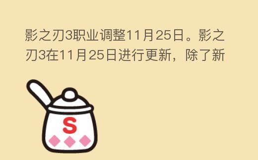 以上就是关于影之刃3职业调整11月25日的相关内容介绍了,希望对大家有所帮助。更多相关资讯攻略请关注:影之刃3专题