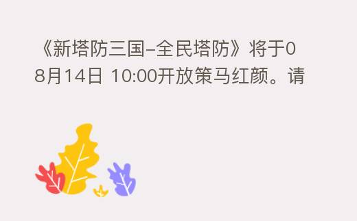 摘要:==========我是分割线===========《新塔防三国-全民塔防》是一款萌系塔防手游,将三国历史上叱咤风云的人物,变化为一座座有爱的防御塔。游戏结合了策略、培养、战斗,每个武将也都各具特色,玩家在塔防战斗的过程中可以充分发挥每一个武将的特点,让自己的武将发挥莫大的作用。q版的设计风格也让每一个武将都更加的亲切可爱,让玩家感受不同的三国人物。【游戏特色】--防,《新塔防三国-全民塔防》将于08月14日 10:00开放策马红颜。请各位主公密切关注开服时间。