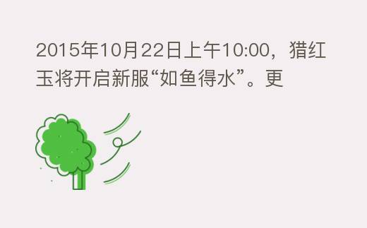 《猎红玉》2015年10月22日上午10:00开启新服“如鱼得水”!开服还有好礼相送哦!