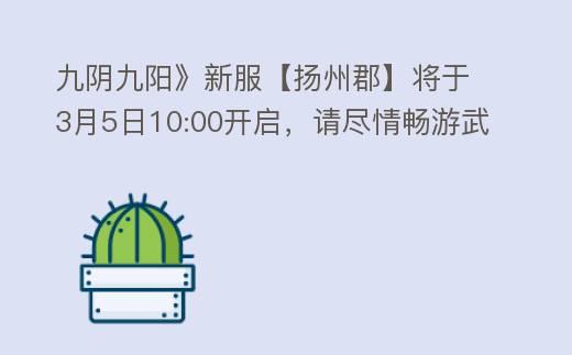 摘要:区服名称:扬州郡一、七日登录送好礼活动规则:游戏内达到5级会开启七日登录奖励,开启后连续七天可领取相应奖励,其中包含装备、侠客、金色感悟、紫色秘籍等。二、等级投资活动规则:购买山庄投资后,达到指定等级可领,九阴九阳》新服【扬州郡】将于3月5日10:00开启,请尽情畅游武林吧!