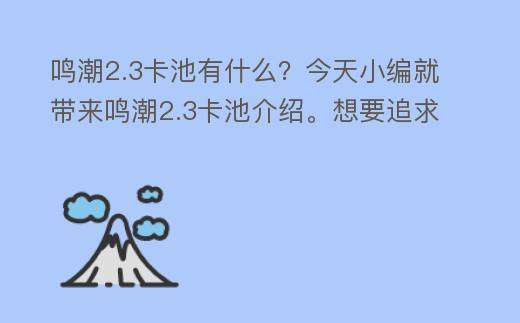 摘要:《鸣潮》2.3卡池介绍首先,2.3版本的卡池新角色分别是赞妮和夏空。赞妮是个光噪主c角色,她的输出能力相当不错,算是一个高强度的主力角色。至于夏空嘛,简单来说,她是个风属性的辅助角色,不光能提供风系的增伤效果,还能补充一些异常状态的反制。但老实说,如果,鸣潮2.3卡池有什么?今天小编就带来鸣潮2.3卡池介绍。想要追求完美收集每个角色,尤其是在资源有限的情况下,就得做出点选择了。这次的2.3卡池,作为过渡版本,大家到底该如何分配自己的资源,才能让自己心