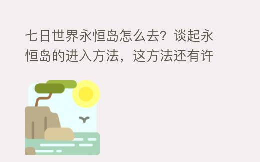 摘要:当大家想要进入永恒岛时,首先得开启永恒岛,这岛屿并不是大家所想象的那种大地图,而是一个小地图,是专属于玩家的一个特殊空间,简单来说就是专门为玩家打造家园所准备的,可以在里面随意打造家园。那么来看这岛屿的开启方法,这方法其实很简单只,七日世界永恒岛怎么去?谈起永恒岛的进入方法,这方法还有许多新人不知道,因此才有了开头的问题,就有很多萌新在问该怎么去,那么为了让大家了解前往永恒岛的方法,这里就带来一期永恒岛的攻略分享,在下面的文章中