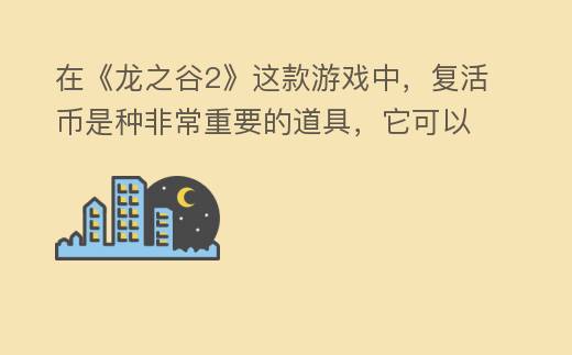 摘要:通过游戏任务获取复活币在《龙之谷2》中,有很多任务可以完成,其中些任务会奖励玩家复活币。这些任务通常会在游戏的主线剧情或者支线任务中出现,完成这些任务不仅可以获得丰厚的奖励,还可以推动游戏的进程。建议玩家在游戏中多接任务多完成任务,这样可以有效地获取复活币。通过商店购买复活币除了通过任务,在《龙之谷2》这款游戏中,复活币是种非常重要的道具,它可以让玩家在角色死亡后重新复活,继续完成未完成的任务或者挑战更强大的敌人。获取复活币成为了每个玩家都非常关注的事情。本文将为玩家介绍些轻松获取复活
