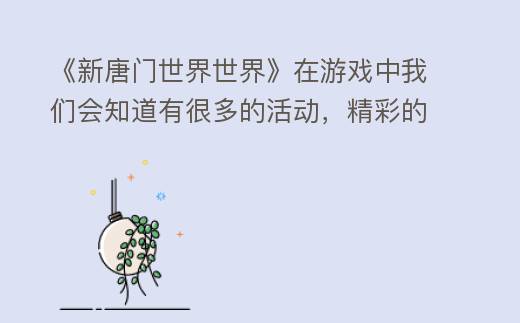 《新唐门世界世界》中的日常的精彩活动奖励大家都明白了嘛?想获得更多的奖励吗?那就赶紧到新唐门世界世界中来吧!