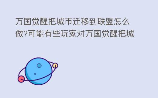 摘要:条件想要迁城必须达成以下条件:1、你必需主城8级以下2、你未有加入任何联盟3、你所有队伍已回到主城4、你所有斥候不在城外方式第一步:?点击左下方,前往城外,然后缩少至右下出现地球第二步:?选择你想要去的国家第三步:选择迁城至王国的哪个地区注意:如果你迁城后不在联盟的地,万国觉醒把城市迁移到联盟怎么做?可能有些玩家对万国觉醒把城市迁移到联盟的方法不是很清楚,下面就跟着小编一起来看看吧。