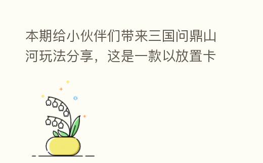 三国问鼎山河玩法相关内容的分享就是这些,提供的不同模式都可以给大家带来不同的道具材料,但是玩法本质上还是以策略搭配为主,小伙伴们尽量将适合的角色放置在一起,而且根据对局的不同对手排列组合的不同,要选择不同的角色上场。